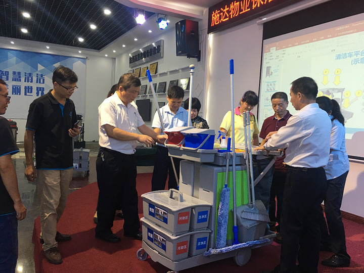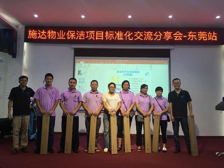 2018年9月27日,在施達總部的毗鄰城市東莞,開展了施達全國物業保潔標準化的交流會。在東莞高美環保設備有限公司的協助下,誠邀各同行聚首一堂,圍繞預防管理——感控管理——模塊化管理——營運體系(培訓、考核體系),共同探討保潔行業的現狀及未來發展方向。