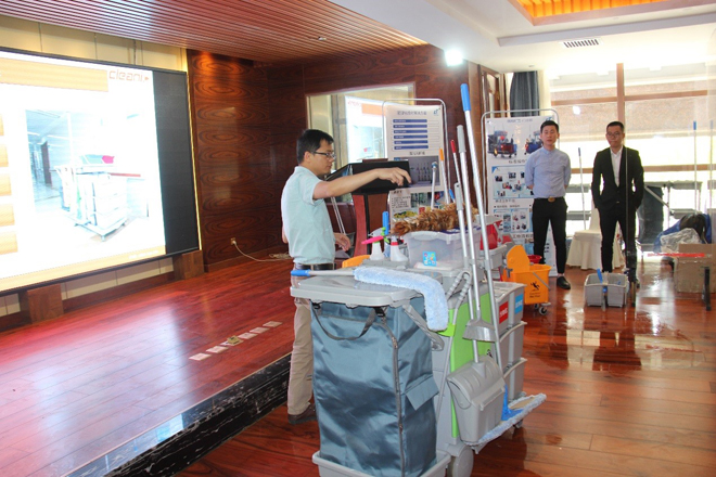 通過講解演示, 讓來賓們體驗日常保潔工具在各個不同工作領(lǐng)域中的搭配及應(yīng)用。結(jié)合趣味游戲,與來賓們互動交流體會心德。最后打鐵趁熱對所學(xué)知識進(jìn)行小檢測,對通過者頒發(fā)認(rèn)可證書。