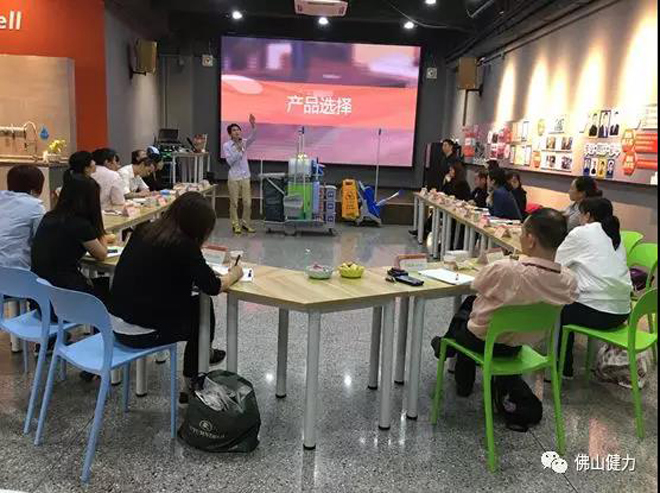會上精彩紛呈,氣氛熱烈,施達品牌經理講解保潔標準化的應用: