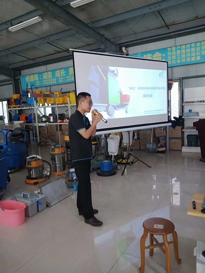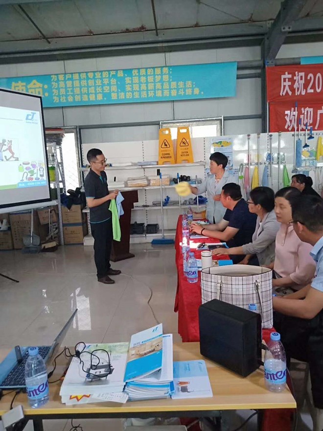 由施達總部分銷業(yè)務(wù)營運助理給來賓們講解演示產(chǎn)品在日常保潔的實際應(yīng)用和管理。