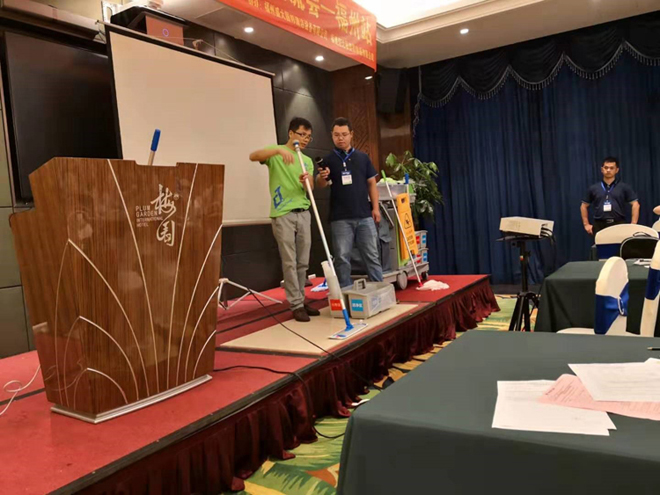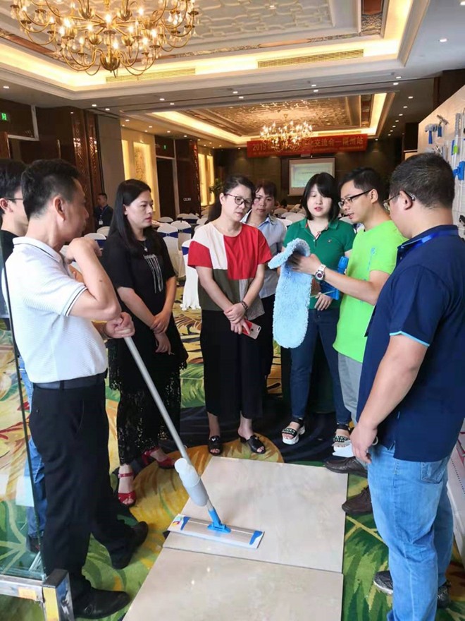 由施達總部分銷業務經理給來賓們講解演示產品在日常保潔的實際應用和管理。