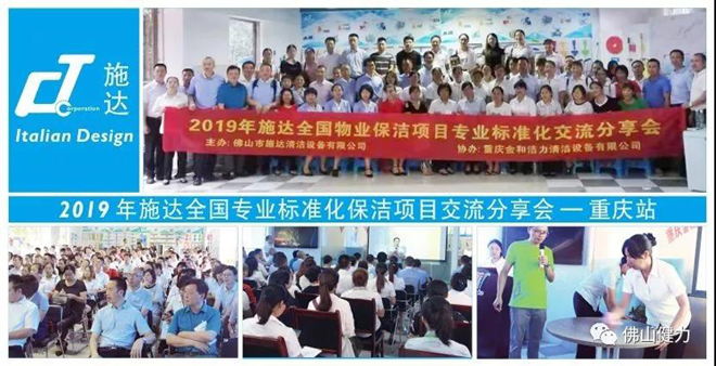 2019年7月18日,本次交流會來到了重慶。在施達重慶地區經銷商:重慶金和潔力清潔設備有限公司的協助下,誠邀各物業管理人員齊聚一堂,圍繞預防管理——感控管理——模塊化管理——營運體系(培訓、考核體系),共同探討保潔行業的現狀及未來發展方向。