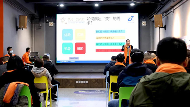 董事長講話后,是管理方隊斗志昂揚、激情澎湃的團隊風采展示!展示的是對營銷的支持,代表的是全力以赴的決心,從上至下,由公司內部往外傳達至經銷商伙伴們。變革,勢在必行!
