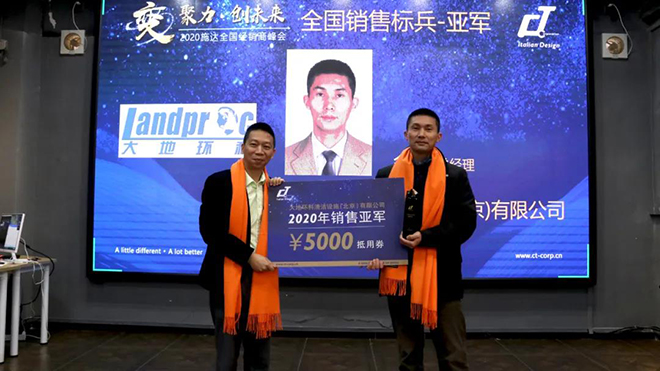 全國銷售標兵-冠亞季軍分別由杭州萬川供應鏈管理有限公司施總、大地環科清潔設施(北京)有限公司余總和成都吉思達清潔用品有限公司張總奪得。