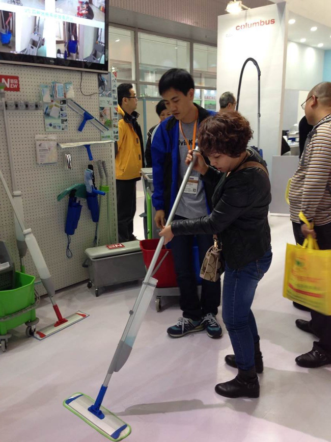客戶對施達CT新款平拖系統產生濃厚興趣,并詢問實際使用情況。