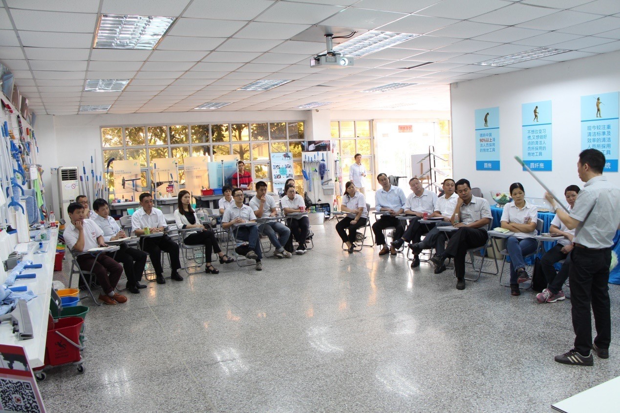 2015年9月24日,健力集團迎來廣州杜斯曼樓宇服務有限公司管理層人員到訪參觀與交流。杜斯曼樓宇服務主要為商業大廈、住宅及工廠等物業,提供完善優質的清潔和膳食服務。本次親臨全面探討相關清潔設備及清潔概念;包括清潔機器、清潔劑、及各種工具等多方面的應用及維護保養。會議中嘉賓們提供各種案例進行深入探討及尋求解決方案。期間健力集團董事長吳永新分享全新的清潔管理概念及分析行業未來發展新趨勢,透過面對面的交流和嘉賓分享,雙方也感到獲益良多。