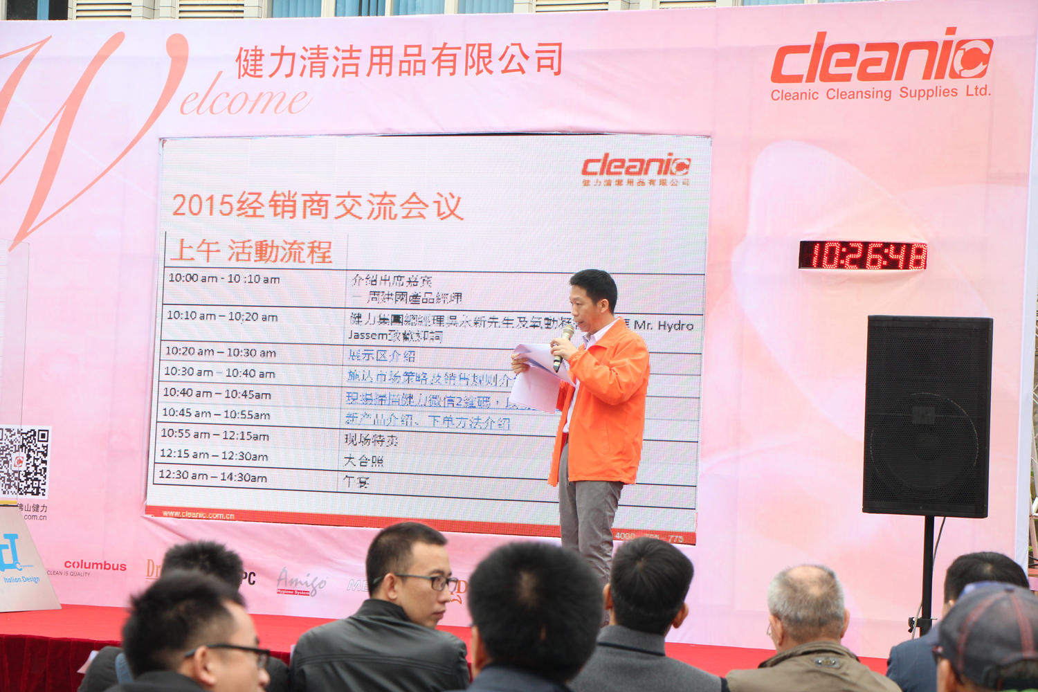 2015年12月12日上午,感謝來自全國各地之經銷商客戶遠道來訪我司佛山健力清潔用品有限公司舉辦的 “2015經銷商交流會議”。透過此次相互交流,一起探討施達市場策略, 銷售規則及未來發展方向。與此同時,會議上還進行新產品及標準化清潔衛生管理系統培訓及游戲互動環節。希望在輕松的氣氛下, 進一步體驗施達產品的最新概念及優勢。
