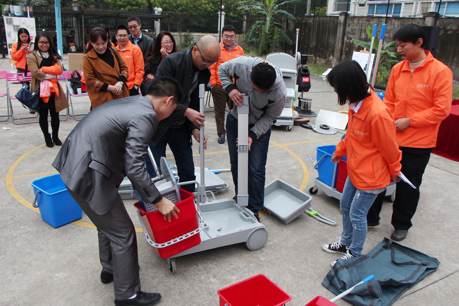清潔服務車組裝比賽,每隊嘉賓發揮團隊精神,以最快速度完成組裝任務
