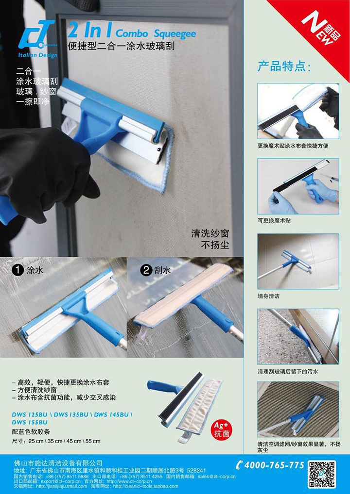 采用綠色環保清潔概念:膠條、魔術貼、清潔布、鋁全金條及手柄等各個配件均輕松更換,同時可以匹配一桿通用的快接鋁桿, 大大減低使用成本。