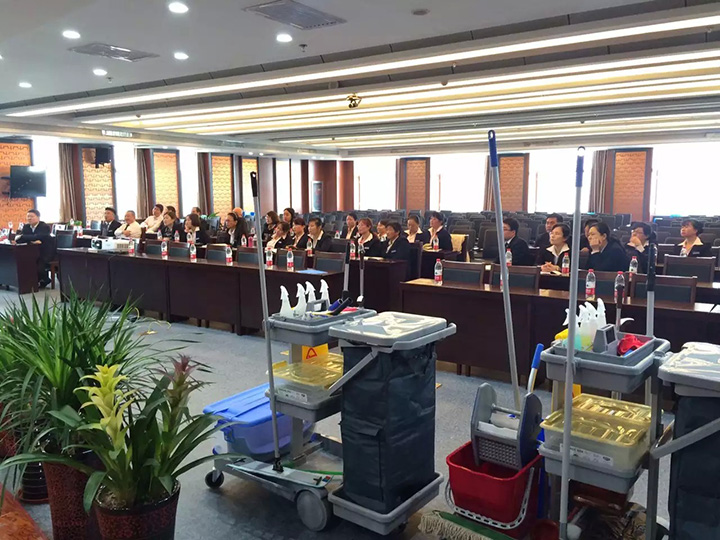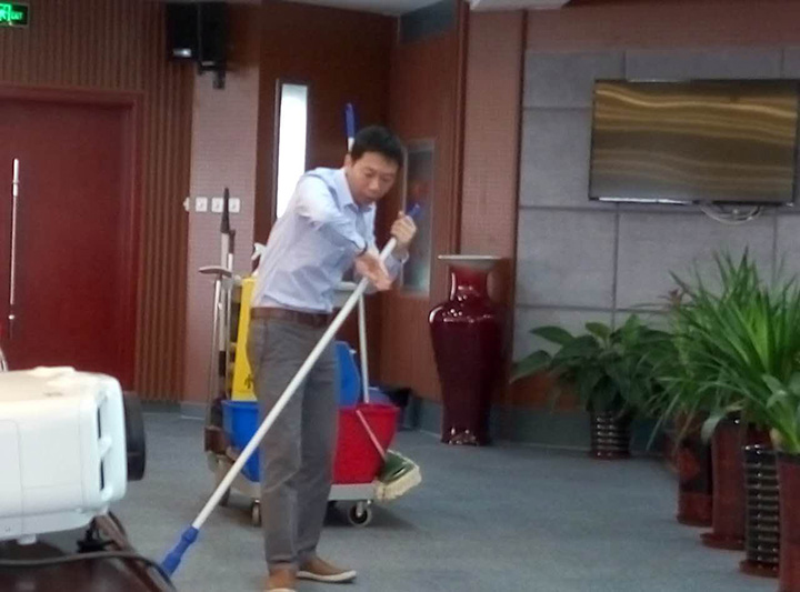 為進一步提高客戶清潔效率、提升物業品質,應客戶邀請,我司佛山市施達清潔設備有限公司產品部經理周建國先生于2016.04.19到達滄州,針對醫院清潔模塊化和標準化等問題與客戶進行深入交流與探討,并對客戶的項目主管和保潔人員現場展示施達清潔產品。