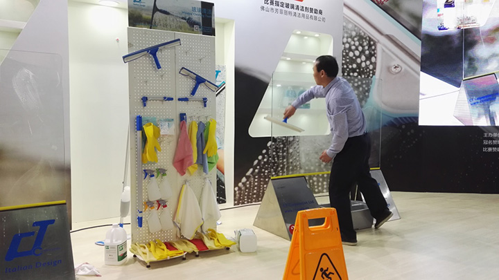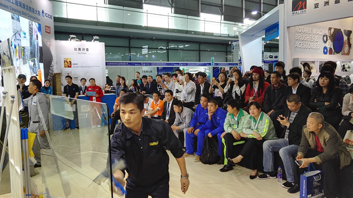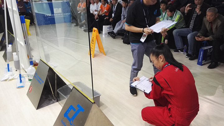 由佛山市施達清潔設備有限公司冠名贊助之2017年“施達杯” 第五屆快樂清潔工玻璃清潔技能大賽 (上海站)于今年4月27號在第十八屆中國清潔博覽會中圓滿結束。比賽現場更是幾度沸騰、精彩連連。 參賽選手使用由施達公司提供的施達2合1玻璃刮、高密納米魔術棉、玻璃布進行比賽,經過激烈的角逐,最終產生二強得主。