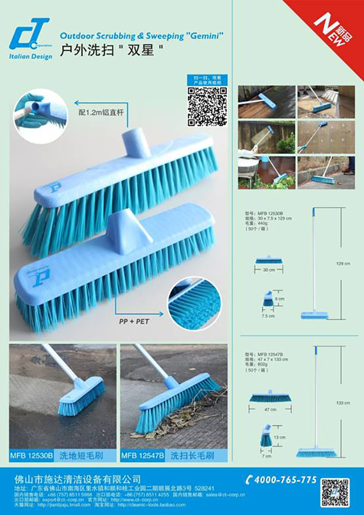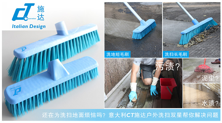 意大利CT施達(dá)推出的新品戶外洗掃刷“雙星”能幫你輕松解決這些問題,施達(dá)戶外毛刷采用優(yōu)質(zhì)PET材料,刷毛具有韌性強(qiáng)、耐磨度高且不容易彎曲變形等特點(diǎn),無論是刷洗污漬還是清掃泥沙都能讓你稱心如意,具有清潔效果好、使用壽命長的優(yōu)點(diǎn)。