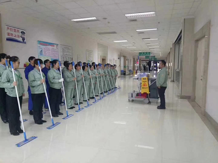 整齊的隊列,嚴謹的培訓,我們的清潔隊伍也能讓人感受出軍隊的紀律,有木有?為我們的保潔人員點個贊。